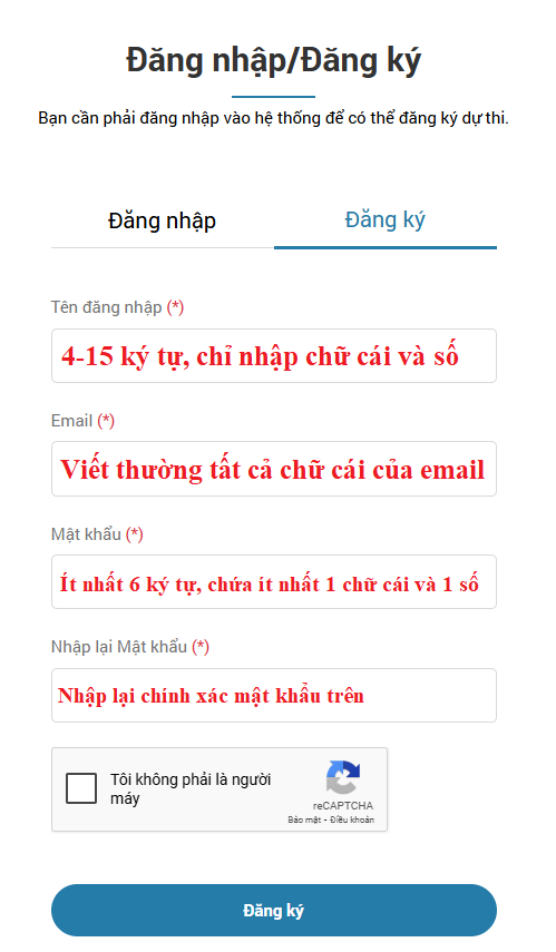 2. Hướng dẫn Đăng ký thông tin dự thi: